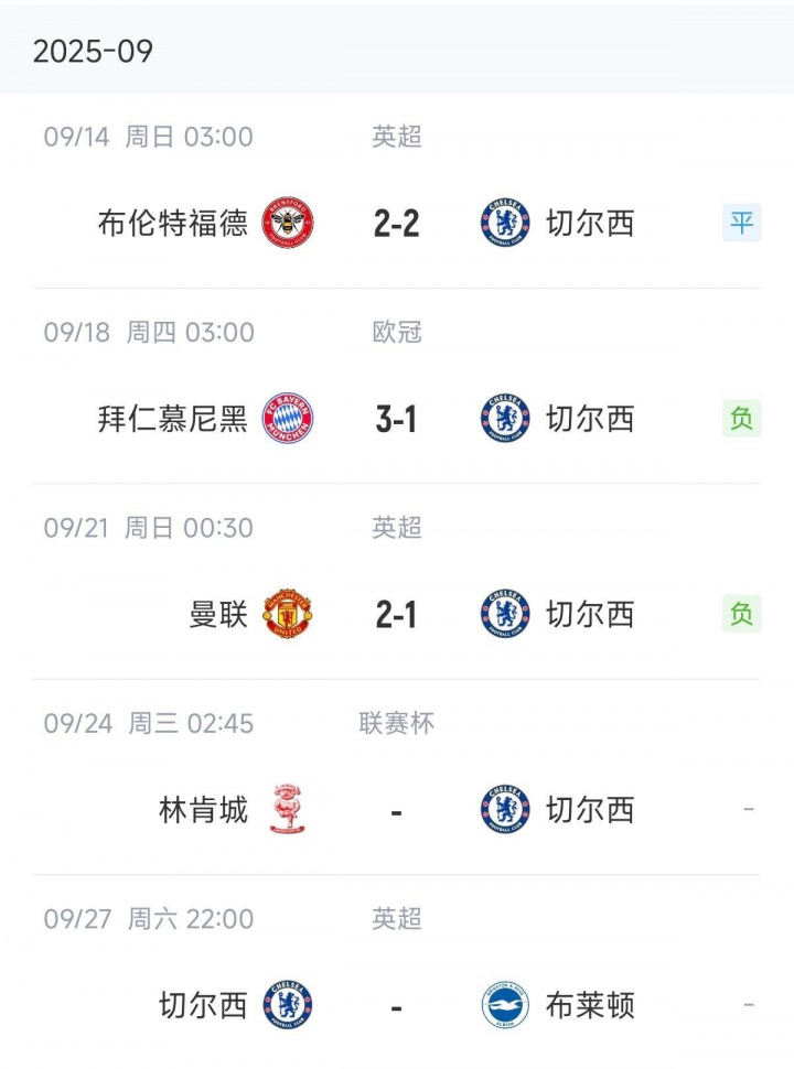 09月21日讯 英超第5轮,切尔西1-2不敌曼联,9月4连客暂时1胜难求2负1平。
